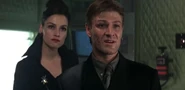 Dopo un breve momento di vertigini, Alec capisce cosa sta succedendo. Si accovaccia verso la sua pistola, ma Bond la calpesta, costringendolo all'indietro. Anche se è disarmato, Alec non è impressionato, affermando che Bond non ha modo di fuggire e che Alec ha l'unica moneta di scambio, Natalya. Ordina a Ourumov di portarla da loro e il generale entra nella cabina con Natalya sotto la minaccia di una pistola.