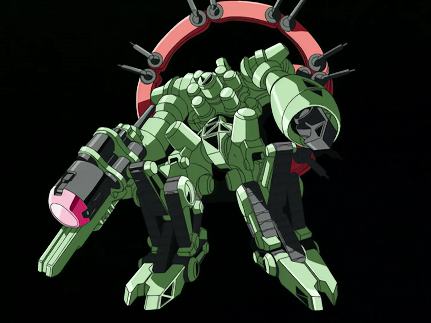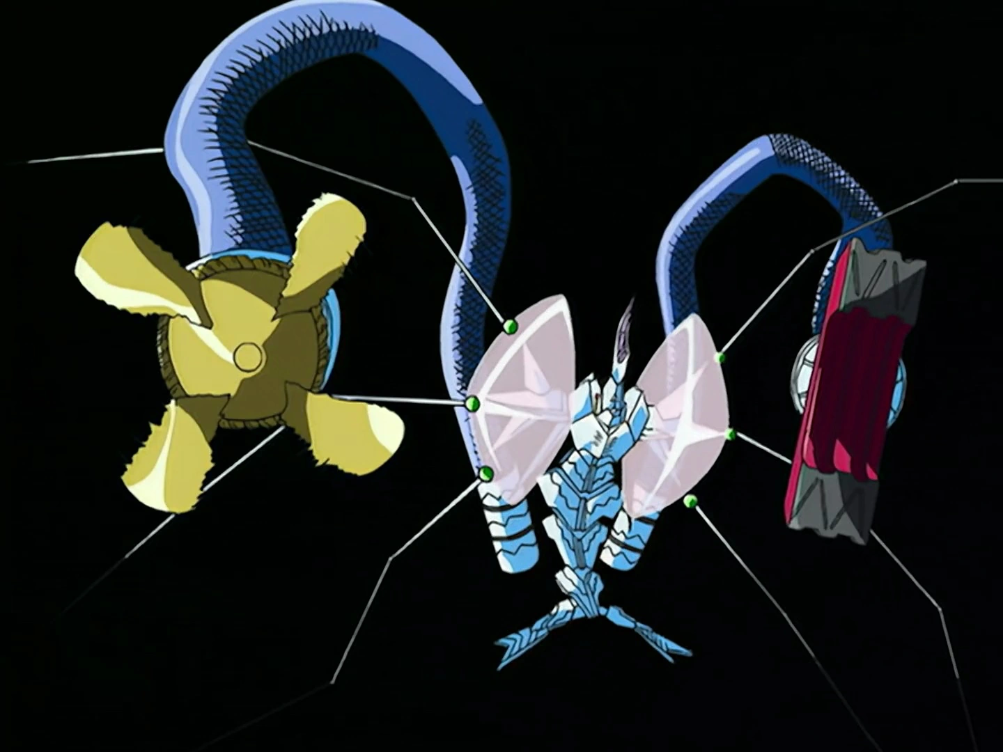 P-Vater is the counterpart of ChoRyuJin. In battle, he appears as a giant green robot with a segmented rings behind his back, which can serve as weapons, being able to unfurl and be used as chainsaws. He faced ChoRyuJin in battle at the Taj Mahal in Repli-India.