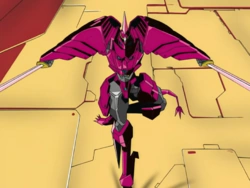 Puranus is the counterpart of TenRyuJin. She appears as a knight-like robot with a large lance and a translucent shield. She fought against TenRyuJin at Athens in Repli-Greece.