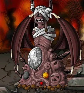 After taking some damage, Akron can also switch to his second form, a massive, monstrous face with a gaping mouth. This form mainly attacks by releasing various weapons and creatures from its mouth, including an enormous blade of energy, Evil Worms (demonic, sandworm-like beasts that attack independently of their spiky tails), and a gigantic sphere of dark energy that has a small chance to instantly kill its targets.