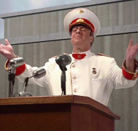 | “ | Comrade general, welcome to the future of Soviet Union. I want to introduce you my little friend. This is Sam... like Uncle Sam. Say hello, little Uncle. The Americans, they have turtle in children's film, it teaches them to fear Soviet Union. The little turtle says "big Russian missiles coming", and he ducks and he covers. Duck, cover, haha! Today, we will make history, comrade! Together we will destroy the United States - their cities, their homes, their dreams, and perhaps more! | „ |