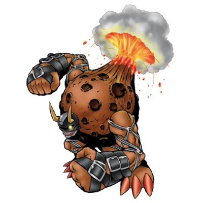 AncientVolcanomon is a Mega Class Digimon that resembles a volcano with arms, muscles, feet, and a head. Whenever he gets angry, the volcano on his back erupts and his face turns red. He can be cooled down by Frigimon.