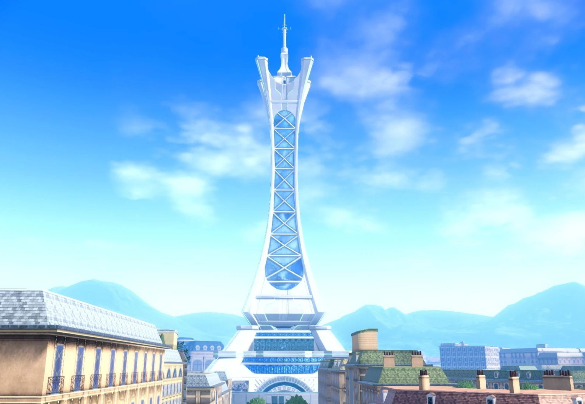 Over the next 2,000 years, Prism Tower became the signature landmark of the Kalos region and Lumiose City was built around the monument. Over time, and multiple rennovations, Prism Tower became a more high-tech futuristic tower, leaving Ange forgotten and buried behind it. In present day, Prism Tower served as the Pokémon Gym of Lumiose City.