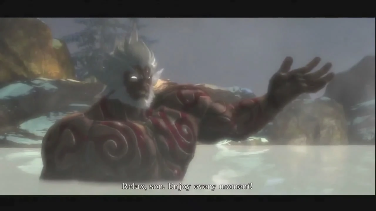 After Asura killed Kalrow, he woke up, and found himself in a hot spring. There, he comes across his old master, Augus. Instead of killing an injured Asura, Augus heals him, and lets Asura relax in the hot spring. They both relaxed in the spring while flirting with a pair of his women servants.