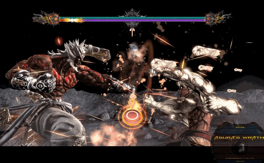 Augus managing to out-punch Six-Armed Vajra Asura.