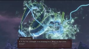 - In the English version, Auroral Serpent sound a bit animalistic whenever speak. In the Japanese version, however, this never happens.