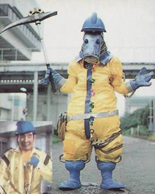Like his predecessor, he is played and voiced by Kaoru Shinoda who previously voiced Jade Mask in Himitsu Sentai Gorenger, Energy Beast Okelampa in Hikari Sentai Maskman, Reckless Brain in Choujyu Sentai Liveman, Arigin and Kaniarigin in Chikyu Sentai Fiveman, Totpat in Kyoryu Sentai Zyuranger, the elder of the Hitotsume Kozou Brothers and Kanedama in Ninja Sentai Kakuranger and later voices GG Boon in Gekisou Sentai Carranger, Amehoshi in Seijuu Sentai Gingaman and Trinoid 0: Saunaginnan in Tokusou Sentai Dekaranger.