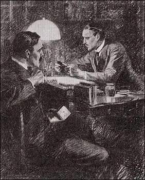 A mysterious client contacted Sherlock Holmes through Sir James Damery. Aware of Gruner's past, Holmes takes on the case, and his first step is confront Gruner. Gruner, however, is unmoved by Holmes's investigation, comparing it to "play[ing] a hand with no cards in it" and arrogantly boasting of his own success at conditioning Violet to reject anything bad she hears about him. He also ends the meeting with an implied threat, telling the story of a French detective who was investigating him and was crippled for life after being beaten up by a gang of thugs a week after investigating Gruner.