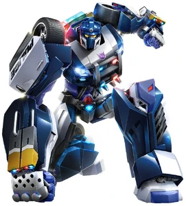 Barricade is a Decepticon Micromaster who leads the Race Track Patrol. He was created in a cross-factional experiment, initially as a neutral, but he joined the Decepticons for the "rewards" they offered and earned the name "Barricade" for his blockade-running tactics. He is known for his brutal, effective leadership and his ability to outwit opponents, leading them into traps.