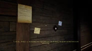 We see that he had titled the article as "Benjamin's Sin". He arrives at the hotel and notices sign with his name on it and a room number 203. Beside it lies a key. Someone has been expecting him. Gale grabs the key and proceeds to the room, hearing disembodied footsteps and pointing out several posters about a missing dog named Bob Bingi. He goes up the ladder, passes a few rooms, while pondering about the hotel's long-gone glory, and enters the room 203. Gale finds it to be empty. However, there is a letter on the table left by Benjamin explaining that he will have to show something to Gale before they can meet in person. A small note attached to the bathroom mirror points out the ventilation shaft entrance in the corner of the room. After he inspects the note, a door to the room gets shut by someone and locked, startling the protagonist and forcing him to move through the vents. Entering there reveals a narrow space between the walls. To the left we see a note with the name Isaac Stevens written at the top, documenting a lodger staying in his room, his favorite activities being eating, walking around the room and watching TV, while Benjamin expresses concerns about his wife being left alone and remarks that it's almost comforting to watch him. Near the note is the peephole covered by a wooden panel that reveals a view of the couch in front of the TV and Isaac sitting on it with his back turned to the hole. Gale mentions that the guy had normal life and was visiting the hotel just to have a time for himself and it turned out he wasn't. Further through the passage Gale finds a locked door to the left and a small note urging him to find a key. To the right lies a ventilation grid with a view of the hotel's kitchen below and a note attached to the wall near it. The note describes two "lazy and dirty" workers and how Benjamin is displeased with their mistreatment of food and constant complaints. He also mentions their dog Bob Bingi that keeps barking at the ceiling, which might compromise his hiding spot, and that he will have to do something about it. Next we pass by the peephole showing us the bathroom of the hotel room where the lovers Mary and Michael, as stated in the document near it, spend weeks on end and seem to be in an abusive relationship. A small note with "Shut up!" also hints that. Gale also stumbles upon a table with a cake on a plate and candles, indicating that Benjamin was practically living behind the walls, coming out rarely and only when it's necessary. We drop into the communication system and a trap door is shut behind us once again, most likely by Benjamin. In there we find a mattress slumped beside another peephole, revealing the reception room and the fact that Ben has been watching us since we'he arrived, through the hole made behind the painting of Peter the Great to mask it. Another ventilation grid to the right shows us a drunk sleeping man named Beau who spends all his time drinking and watching porn, sometimes making calls to an unknown person. The passage leads us into the closet of the room 204. It is turned upside-down with furniture and clothes strewn about the place. A key to the secret door lies on the table near the knife and a note, directing Gale to take the key. In the bathroom we find Bob Bingi, lying dead in the bathtub, blood surrounding the body and another knife. Gale now heads back into the room 203 with his newly obtained key, squeezes through the secret little entrance again and unlocks the mysterious door to the left. He finds himself in a dark room, with only lit lamp near the peephole and two notes attached. We finally get to know Benjamin's most profound deed. Through the peephole Gale sees Isaac Stevens from the front. His body is motionless and in a state of decomposition. He has been choking on a grape for three minutes, and Benjamin was just standing there, watching until he suffocated to death. A note near the letter to the attic has several phrases "I LET HIM DIE" crossed out. Gale climbs the ladder and walks down a long hallway with a table at the end. A single lamp illuminates a final note from Benjamin. "This is the end of out story. Make it a good one". We hear a shot and something heavy dropping to the floor. A wall to the left now has a bullet hole in it. Gale looks through and gasps, seeing a corpse of none other than Benjamin himself. He shot himself in the head. The game is finished by Gale's monologue about the remorse and obsession of a lonely man who has seen too much and couldn't live with the guilt. He has tried to make him see what he saw, and since it wasn't enough to escape, he took his own life. Gale realizes, how much he understands Benjamin and that his own situation is not that different, having seen too much and nobody to share it with. Gale calls the boss and tells him that he has the title.