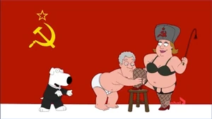 The following morning, Peter woke up face flat in his kitchen and everything was a complete mess. He had no recollection of what happened the night before but Lois remembered just about everything. She was very mad at Peter for acting like such a destructive moron and getting in trouble with the farmer and decided that Bill Clinton was a horrible influence on him. Lois went down to Bill's apartment to complain and before long, she found herself lying next to him in bed, having been convinced to have sex with him.