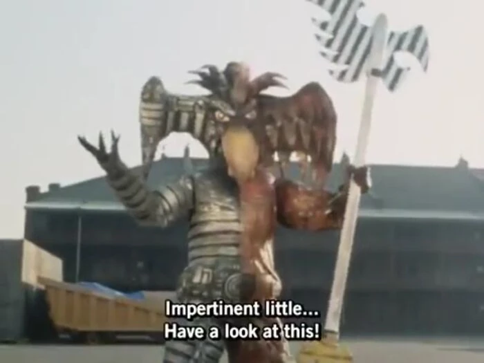 The Bird Mozoo is the minor antagonist of Dai Sentai Goggle V, appearing in Episode 2 as the primary antagonist. He is the bird themed Synthetic Beasts on the service the Dark Science Empire Deathdark and is one of the warriors of the Führer Taboo and General Deathgiller. He was sent by Deathgiller to attack Tokyo and destroy the Goggle Rangers, after they foiled the first plan of the Deathdark. Bird Mozoo possessed the power of telekinesis and gravity manipulation.