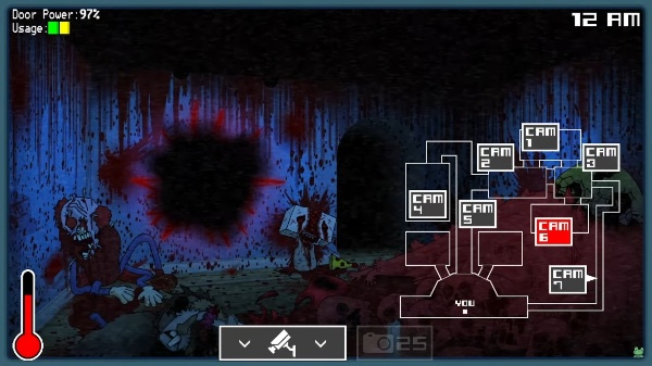 Birthday Boy Blam will move around the location from CAM 1 to CAM 4 to CAM 2B and then to the office door. The player must close the door to avoid being killed by him.