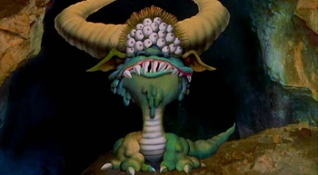 He is a legendary beast who awaits and consumes anyone who enters the cave guarded by the Rabbit of Caerbannog, where the last words of Joseph of Arimathea can be found carved inside. He is briefly seen when he is revealing his face on a cave that King Arthur and his Knights of the Round Table pass during the journey for an enchanter that will guide them for the cave that guarded by Rabbit of Caerbannog.