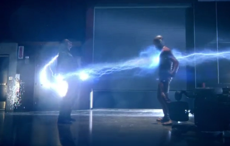 A body is found by the CCPD, completely burnt. Barry deduces that the has been burned by at least 2400°. Deducing that the on the ground are evidence of an arc blast, Barry realises that the victim has not been burnt but electrocuted to death. With help from Cisco, Barry eventually identifies the body as Casey Donahue. While doing so, Cisco sees that someone is using Donahues ID the same moment to access Petrsburgh Electrical Substation, where Donahue was working. Arriving there, Barry witnesses Brooke drawing electricy from the machinery. Barry then makes his presence known and Gibran shoots a bolt of electricity at him. Gibran then claims that he has to feed. While hitting Barry with another bolt, Gibran drains Barry's power from him. Barry tries to escape, but Gibran decides that he needs more and shoots at Barry's back, drawing more and more energy from him. Eventually, Gibran realises that he's had too much and walks off. When Barry tries to return to Star Labs, his powers fail him.