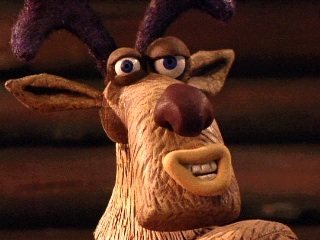Blitzen is later seen in preparing to take part in the Steeplechase at The Reindeer Games and has taken a drug to improve his performance. He is alarmed when he sees Robbie at the games too and sees him run very fast to save Santa's baby son from being squashed by a falling walrus. Robbie leaves the games to save his mentor Old Jingle after his house falls on him, but is able to rejoin the race and is able to catch up with Blitzen, who knocks him to the ground with one of the hurdles. Luckily, Robbie uses a technique called The Nose Jump and seems to cross the finish line the same time as Blitzen. A photo finish is taken and shows that Blitzen crossed the line first and he celebrates, but his celebrations are short lived as the news of his drug taking is revealed and he is taken away by a group of elves to give a sample. As Blitzen is led away, Vixen tells him that he is "chucked" (British slang for dumped). He is last seen in Santa's workshop painting Robbie dolls as punishment for his actions.
