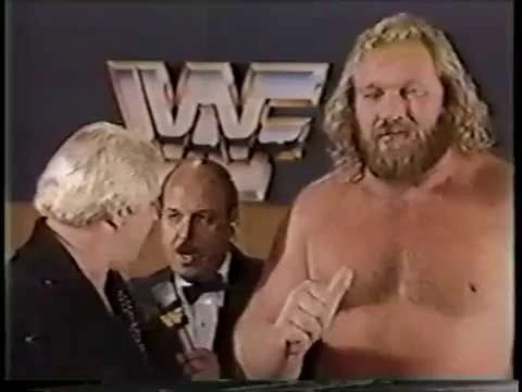 Bobby Heenan and Big John Studd being interviewed by "Mean" Gene Oakerland