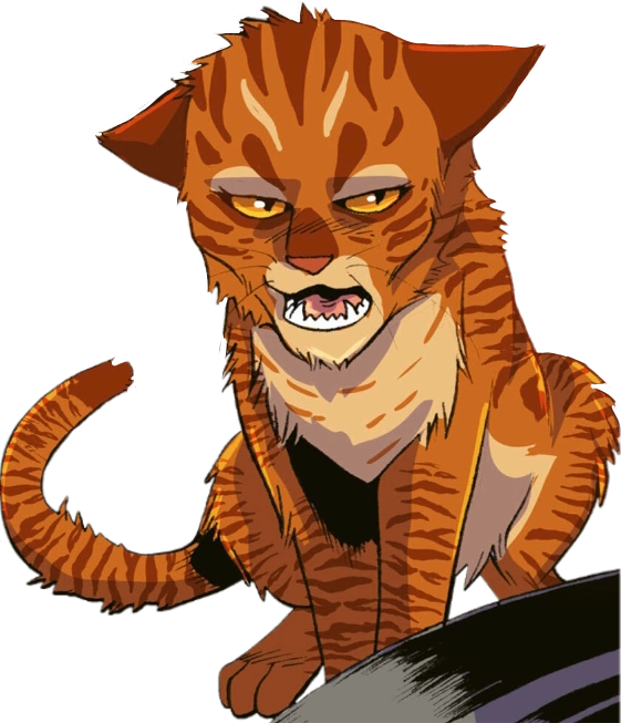 Brick is a ginger tomcat with amber eyes and a large scar on his back. After joining BloodClan, he have sharpened dog teeth reinforcing his claws and wears a collar studded with the claws and teeth of cats and dogs.