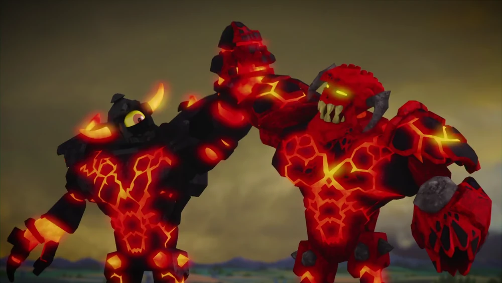 Burnzie and Sparkks are minor antagonists from the LEGO Nexo Knights series. They a duo of giant Lava Monsters and former servants of Jestro and Monstrox, who currently live in Burningham.