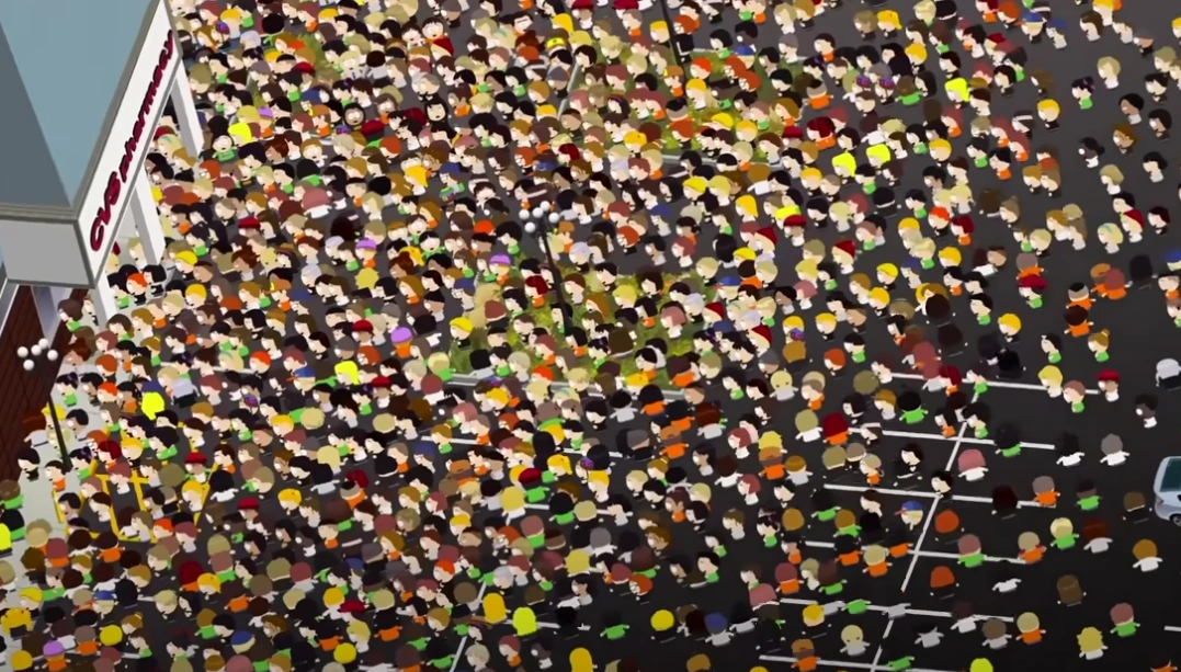 They then start fighting, killing, and attacking each other to get as many CRED drinks as possible, and they are also shown breaking windows of the store.