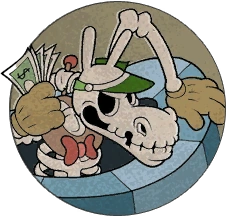 Pirouletta is a ballerina roulette wheel that dances back and forth on a roulette table for her main attack. She will miss if you use the smoke bomb to avoid getting crushed underneath her. She will stop at either end and spin, launching roulette balls into the air to rain down on the player. When defeated, she will look very upset and distraught.