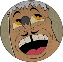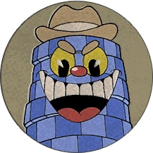 Mr. Wheezy is a giant cigar lit by King Dice. He spits fire projectiles and vision-impairing smoke, as well as summoning cigarette bats. Occasionally, he will disintegrate into ashes and travel to the ashtray on the other side of the stage, attacking the player with his sheer heat. When defeated, he is stomped out by King Dice.