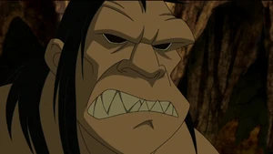 Later, Turok is seen in his cave and hears a noise, believing that it is Sepinta. However, it is a Caveman and he attacks him. Turok throws his tomahawk at the Cave Dweller, which didn't kill him yet. When the Caveman proceeds to strangle him, Turok sinks it deeper and tore it out, which is strong enough to kill the Caveman. As he gathers his bow and arrows, several of the other villagers are attacked and killed by the Cavemen. One Caveman lifts up a villager and the shadows shows that Caveman rips him apart. A little girl is attacked by a Caveman, but Turok shoots it with three arrows, which didn't kill it. When it saw him, Turok shot another arrow and this time its chest, but it wasn't deep enough, which allows the Caveman to remove it. When Turok asked Sepinta what does it take to kill these "men", Sepinta responds that they are not men. She knocks down the Caveman and it gets impaled by the three arrows, which still didn't kill it. The Caveman is still alive and then tries to pull Sepinta to have her impaled by the arrows, but Turok successfully saves her by finishing off the Caveman with an arrow in its head. Catori and Andar are attacked by a bloodthirsty Caveman, which gets shot by Andar with an arrow, but he didn't die. He tries to remove the arrow completely, but only gets half of it. When Catori asked what they are, Andar said that they are devils. The Caveman was about to attack them, but he gets bashed in the head by Turok's tomahawk. Turok tells them stay in the opening when they fight them, and warns them if they get cornered by them, the two will die. As he goes out to fight the Cavemen, at least two villagers are impaled by a spear thrown by the Cavemen. The four female villagers tried to get to safety by climbing on a ladder, but a Caveman shakes the ladder and throws it and the four villagers off the cliff as they fall to their deaths. While Turok aids Koba, Chichak was about to shoot him, but only for Koba and a villager to chase him. Chichak kills the villager as Koba catches him to kill him. Chichak stabs his right leg, which gives the Cavemen the chance to kill him. Koba uses a spear and tosses some of the Cavemen to the void. When Sepinta sees Chichak, she was wondering who is he, which Turok tells her that he's his enemy. As Koba bravely tries to fend them all off and prevent them from reaching the other side, the fight triggers a hole in the bridge, with a Caveman dangling on to him to not fall. Koba gets him off as the Caveman hollers in horror and falls to his death in the void. As Koba gets back up, some of the Cavemen have already reached the other side, but are killed by Sepinta and Turok. He then tells her to cut the bridge or they will keep coming until they will be all dead, but Sepinta rushes to help Koba. When she tries to help him, Turok tells her to do it, but Sepinta will not allow Koba to die. With no choice, Turok pushes her out of the way and prepares to cut the ropes. Koba nods at Turok to do it and accepts his fate. Turok cuts the ropes, which sends Koba and the caught Cavemen to the void, killing them. Sepinta looks down with sadness and sorrow of Koba's loss. Without the bridge, Chichak and the other Cavemen can't reach the other side, but he tells Turok to look behind him. A lot of villagers have been killed, with Chichak vowing to kill Turok and the others, and reclaim his father's blame.