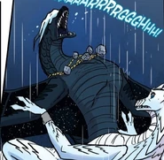 When Winter was visiting Glory, Bullfrog, a RainWing healer, subtly referred to Chameleon as a lime green RainWing who was unable to sleep due to a malformation in their nose or change the color of their scales. It was also reported that he had seen other RainWings while they slept. This was how Chameleon was described. Later, when Scarlet visited Icicle, Winter, Qibli, Kinkajou, and Moonwatcher traveled to the Talons of Peace to obtain a SkyWing that would assist them discover the peak that Moon had seen in her dream. They discovered a dragon named Pyrite when they arrived, and Chameleon, who was posing as Cirrus, objected to them taking her. Winter speculated that Pyrite might be an animus and that Cirrus intended to restore the magic to the IceWing lineage, but he dismissed the notion after observing that he showed no signs of going back to the Ice Kingdom. Winter said that since he was royalty, he and Cirrus ought to have known each other. Cirrus responded that he might know Winter's parents, Narwhal and Tundra. Queen Glacier told Winter later that they haven´t had a Cirrus in many time on the way to Winter and Hailstorm's Diamond Trial. She stated she would investigate, speculating that he might have been outside the kingdom and thus lacked a rank on the IceWing wall. Moonwatcher, Winter, and Qibli overheard Chameleon speaking to Scarlet while wearing his NightWing mask Shapeshifter. Later, he attacked Kinkajou, slamming her into a tree and putting her in a coma when he went to the dragonets' camp to get Pyrite. He did this because he harbored resentment for the RainWings, according to Escaping Peril. Even though his wounds healed when he changed shape, he went with his eyes burned by the Moon and frozen by the Winter after failing to acquire Pyrite.