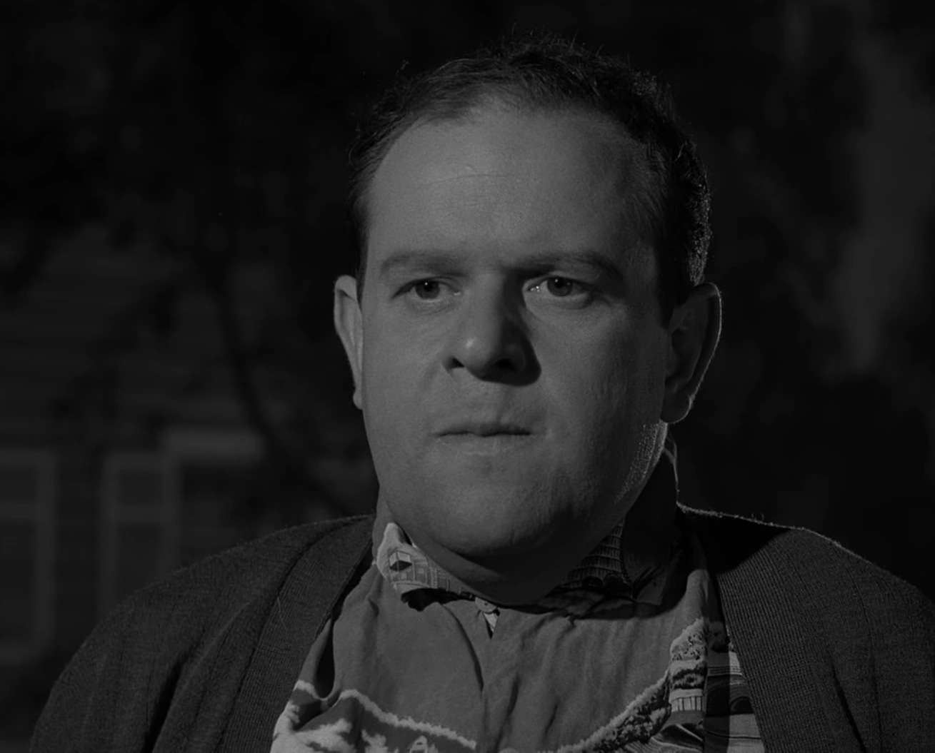 Still suspicious, Charlie had the other neighbors keep a watch around Les' house as the sky went dark, Charlie sitting on his lawn to do so. His wife soon brought him a jacket and a drink, saying it was wrong to spy on the Goodmans, as they had been neighbors for three years. Charlie claimed that someone who acted like Les did was worthy of suspicion and had something wrong with them, saying the circumstances weren't 'normal' enough to let it slide. Steve and Les talked, both believing the situation was just madness, but Charlie yelled that Steve had best watch who he met with, as Steve was also not beyond suspicion. A neighbor asked if all they were going to do was stand around all night, and Charlie responded that it was all they could do, saying that the aliens would show themselves sooner or later. Steve urged him to forget it and go to bed, but that made Charlie suspicious of Steve, yelling that Steve seemed anxious for the situation to blow over, prompting another neighbor, Don Martin, to reveal that Steve's wife was talking about strange things Steve was doing. Charlie urged the neighbor to continue, but Steve protested that Charlie might as well throw together an impromptu execution and investigate every small oddity and idiosyncrasy of everyone present. Don revealed that Steve had supposedly been building a ham radio that nobody has seen, making Charlie come up to Steve and demand he explain himself, asking who Steve was talking to with it. Steve, angered, sarcastically said that he was talking to aliens, but his wife interjected and claimed that it was a simple radio, but Steve refused to show it, telling Charlie to get a search warrant. Charlie tried to say that Steve couldn't afford to hide it, but Steve rebuked him and pointed out that Charlie and the others were just trying to assign blame somewhere, and that the situation would destroy them all.