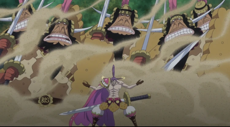 As Cracker held Pound up, Randolph attempted to attack Nami and Luffy, but Cracker ordered him to stop and threatened him and the other nearby homies if they attack them. After ordering Randolph to stop, Cracker revealed that his mother sent him to aid his sister, Charlotte Brûlée, because Luffy had defeated Donquixote Doflamingo and would have given her too much trouble otherwise. Cracker then prepares to execute Pound, only for Luffy to counter his attack, forcing Cracker to release Pound from his grasp. Cracker and Luffy then engaged in battle, but Cracker quickly knocked Luffy away with his multiplied his limbs and declared that Luffy had no chance of defeating him.