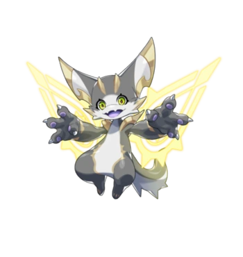As Chronos Nyx, he is bigger than his small form but smaller than his original form. In this form, his body, while still having a few lizard-like traits, comes off slightly more humanoid. He has a collar with multiple colored spikes around it in place of the circular structure.