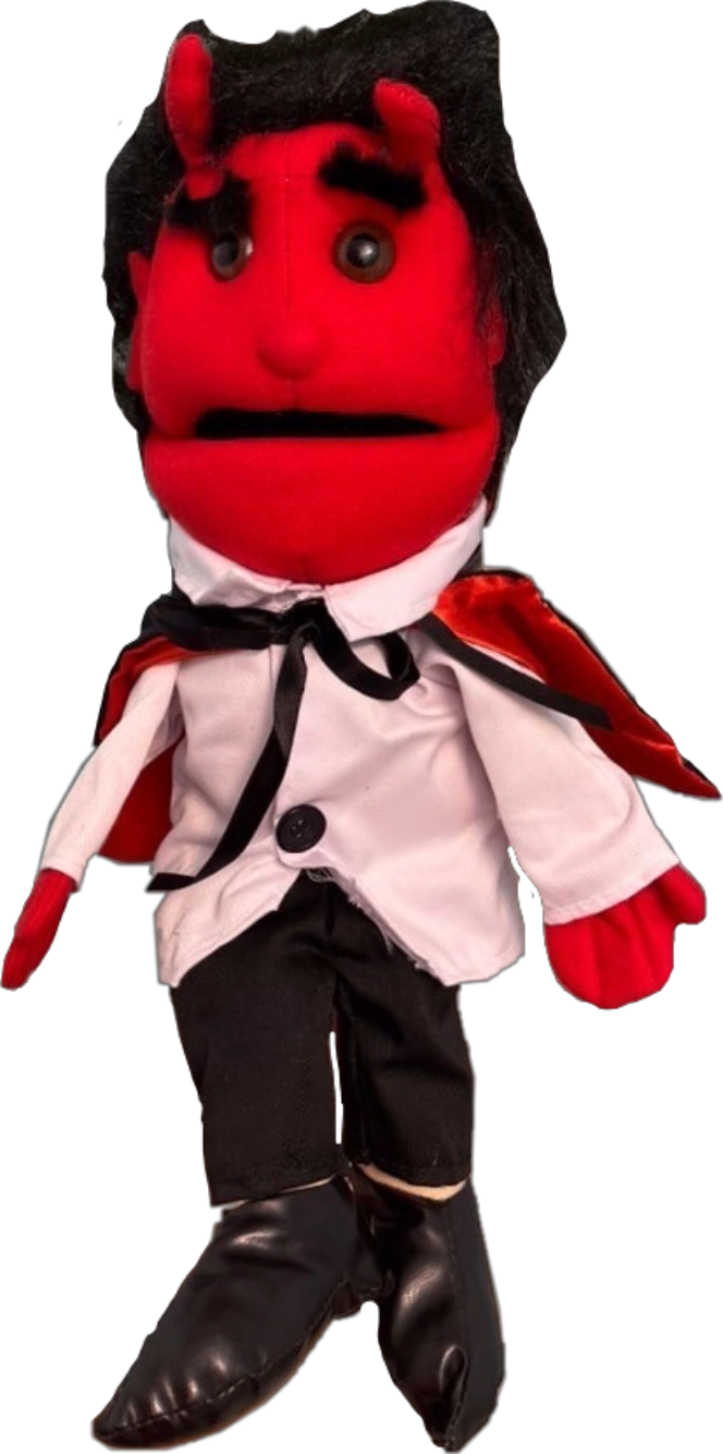 Craig Jr. is a 14 inch devil puppet made by Sunny Toys. He looks just like his father, except for the fact that he is smaller than him and has different eyes.