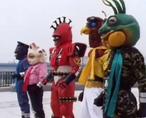 • The Creeps' monster forms were only seen in Carranger Footage, which is why only Crash sheds his human disguise at the park.