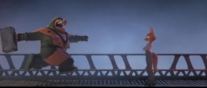 Diane soon return to her identity as the Crimson Paw and sneaks into the S.U.C.M. Prison. Using her strength, agility, and clever tactics—including kicking a shoe at two guards to knock them out—she manages to take down many guards on her own. She frees the innocent Bad Guys and, after fighting even more guards, escapeswith them in a boat. Unfortunately, the Bad Guys split up from Wolf because they feel betrayed by his change of heart, thinking he doesn’t want to be around them after Marmalade tries to make them believethat. Diane comforts Wolf, shares her own journey of redemption, and assures him that if his friends are truly his friends, they’ll forgive him and join him.