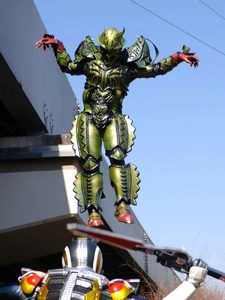 The Crust Imagin then travels to the past and attacks the soccer stadium before Kamen Rider Den-O shows up. He is destroyed by Den-O Rod Form, but becomes Gigandeath Hades right after only to be destroyed again by DenLiner Isurugi.