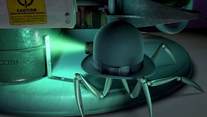 DOR-15 encouraging Bowler Hat Guy to prepare himself present the Memory Scanner, which was originally invented Lewis Robinson.