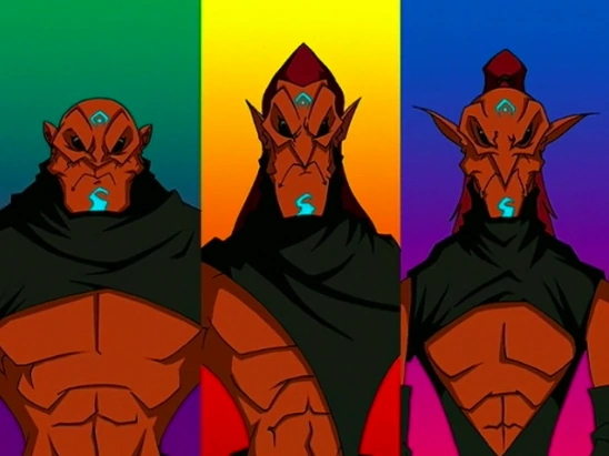 The trio gained their predecessors' weapons and powers, yet managed to still be incompetent. When Hak Foo is turned into a Dark Chi Warrior, he is called Zhen.