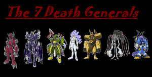 The Dark Generals (in Japanese: デスジェネラル, Desu Jeneraru Death Generals) are a group of 7 commanding officers within the Bagra Army, are most powerful Digimon of the army and the Digital World and rulers of the seven kingdoms and are main antagonists in the second half of the anime Digimon Xros Wars/Fusion.