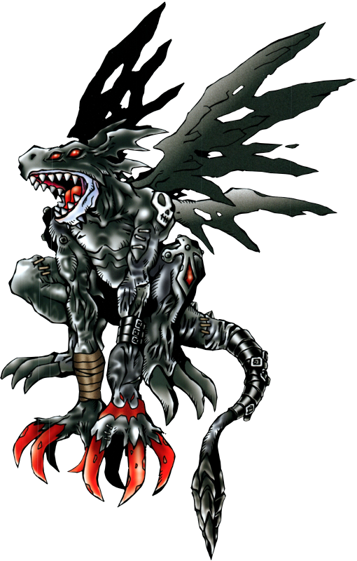 Devidramon looks like a black dragon-like demon bat with 4 blood red eyes, ripped wings, red razor sharp claws, and a tail with a hidden 3rd claw. He also has a skull tatooed on his left shoulder, and a red bat symbol on his left knuckle.