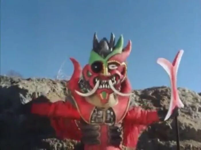 Devil Monger first appeared at the beginning of the Episode, when he was created to assist Hell Saturn and the newly revived Queen Hedrian to collect two sacrificial females for a special ceremony during a solar eclipse for their Black Sun God. Together with Zero Girls and Machinemen, Monger attacked Tokyo and successfully kidnapped two women, before preparing for the ceremony. Sun Vulcan Rangers tried to interfere and save the girls, but failed. After this event, the Rangers returned to their base and started discussing the plan of Black Magma, by searching the way to stop the villains.