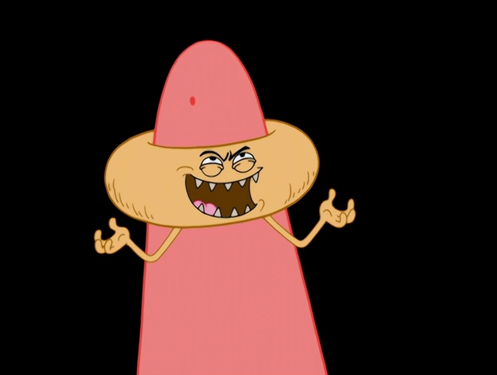 GrandPat Star | Tinkle the Toilet | Dr. Plankenstein | Pat-gor | SpongeMonster | Ice Cream Prohibition | Crabina Finkle | Gatekeeper | Dust Demon | Flim-Flam Brothers | Admiral Smash | Robot Parasite | Sea Monster | Babies | Tony Tuna | FitzPatrick | Beelzebass | Junkyard Worm | Star House | Hamdonians (Jolly King Pork Chop, Prince Shmeat) | Enigma Shapeshifter | Alien Judge | Dale Goppler | Andrew Fishman | The Kelpbed Kids | Guard Toilet | Bubblebassasaurus | Evil Moustache Patrick | Shmandrake | Pat-Tron’s Family (Pat-Tron) | King Saladrian | Bare-Knuckles the Sea Bear | Patrick's Organs | Deli Butcher | Agnes Steelhead | The Fantacles | Sockeye Sammy | Gameshow Patrick | Puppies | Zombies | Shmandorians (Sarge) | Underground Alien | Mermaid Worm and Barnacle Barnacle | Klopguardians | Future Patrick | Splatter Maker 9000 | Aliens (Captain, Alien Queen, Fuzzy Aliens) | Star Family's Enemies (Ice Cream Man, Fentin Finkle, Sea Fly) | Alternate Universe Patricks (Pat the Hapless, Bug Patrick) | Dust Devil | Night Club Pets (Pinkeye) | Smart-Tron | Foster Family | Few Minutes-Younger Patricks | Comedy K Novelties (Bouncer) | Squatrick and Patina | Digital Ghost | Villager’s Head | Sandwhich Monster | The Dads | Mr. Rilla | The Patrick Star Show: The Sitcom (Fake Patrick’s Family) | Kissy | Devil Plankton | Playground Monsters | Fancy! (Waiter, Hungry Customers) | Old Men | Big Robot Arms | Gem Aliens | The Killtrons