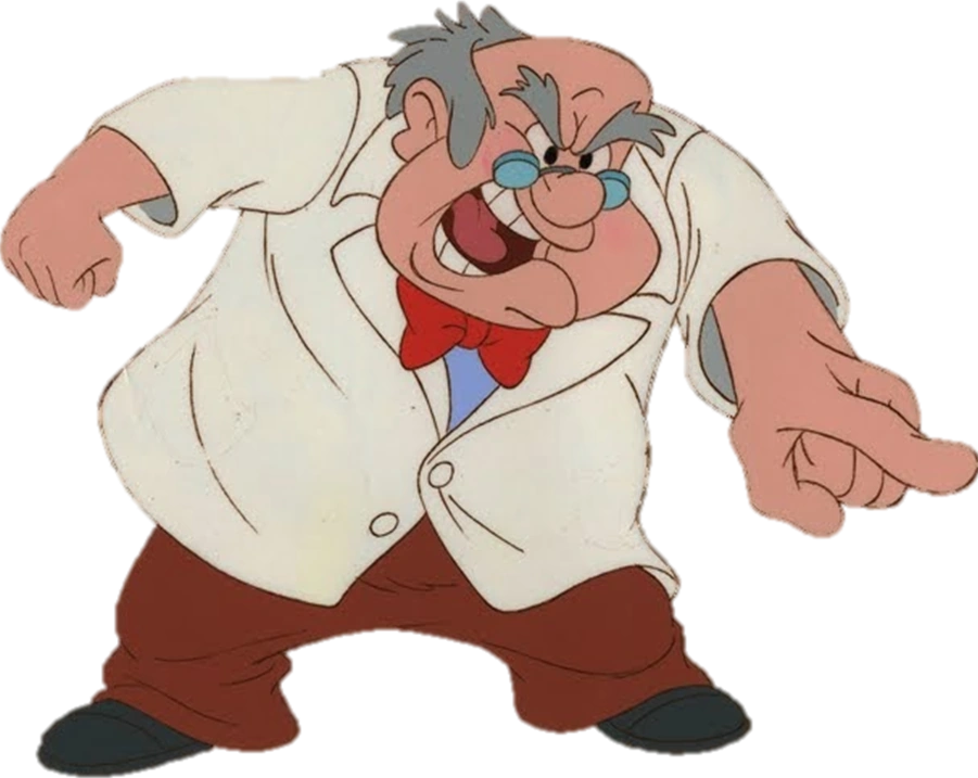 The next morning, after Tom the Cat and Jerry the Mouse trashed the kitchen during a food fight with Ferdinand last night, Figg drops them off at Dr. Applecheek’s house, where he kindly takes them in. However, during the song, “God's Little Creatures”, he reveals his true nature as he puts Tom and Jerry in a cage, a cruel, greedy, and abusive pound owner who steals pets from wealthy people and to sell them back for money.