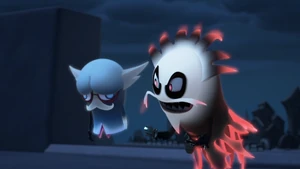 The Spooka-Bazooka is an anti-ghost weapon which shoots out a rope which bags ghosts to prevent them from flying. Buttocks plans to sell these to all the Pac-Worlders. When Betrayus asked why would he sell anti-ghost weapons to the enemies of ghosts, Buttocks reveals all the Spooka-Bazookas are set to play a soothing lullaby at noon that puts all Pac-Worlders to sleep for 100 minutes, giving the ghosts enough time to invade. This plan actually worked better than expected; not only did everyone buy one of these (except Pac-Man), but Pac began to feel useless because everyone now had personal protection, and he gave up being a hero. But Pac not buying a Spooka-Bazooka allowed him to stay awake when everyone else was sleeping and stop all the ghosts after regaining his confidence. He also decided to use Spooka-Bazookas to fight his way through Pacopolis. After all the ghosts in Pacopolis had been eaten, Pac paid a visit to the Round House, gobbled Betrayus, and shot Buttocks with his own invention before eating him.