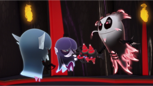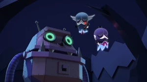 He is a pale blue ghost with glasses, wild white lightning bolt-shaped hair, and a bionic left arm, stereotyping a traditional scientist. He, along with his twin brother Butt-ler work directly for Lord Betrayus. He is also Sir Cumference's rival.