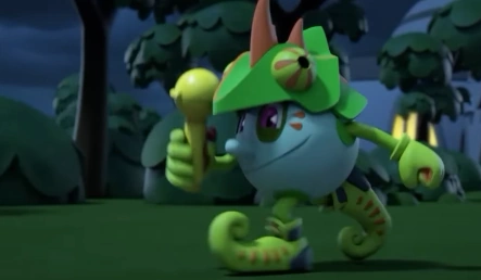 During his trip to Pacopolis, he tried to devour an old woman, who would end up vomiting her up as she was unable to digest it. Then, faced with a crowd chasing him, he consumed an ice berry to freeze his pursuers.