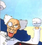 Dr. Warumon looks just like your stereotypical mad scientist, with a bald head with white hair on the sides (which make him look similar to Dr. Wily) and wearing a monocle and evil-looking cape. His name literally means "Evil Doctor".