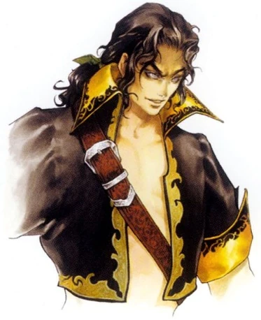 He first transforms into a challenging, flying, wizard-like vampire, who fires energy balls on both sides and conjures doubles of himself blasting energy pillars. The heroes must get under the real one, who does not attack. (Many fans believe that this form is the witch Drolta Tzuentes sent as a distraction, due to it looking like her artwork.)