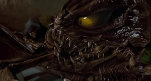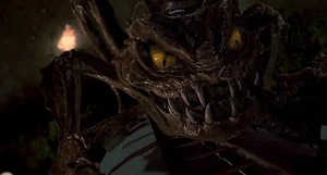 Edgar was grabbed by a long arm of an insect like-creature and pulls him into the crater.