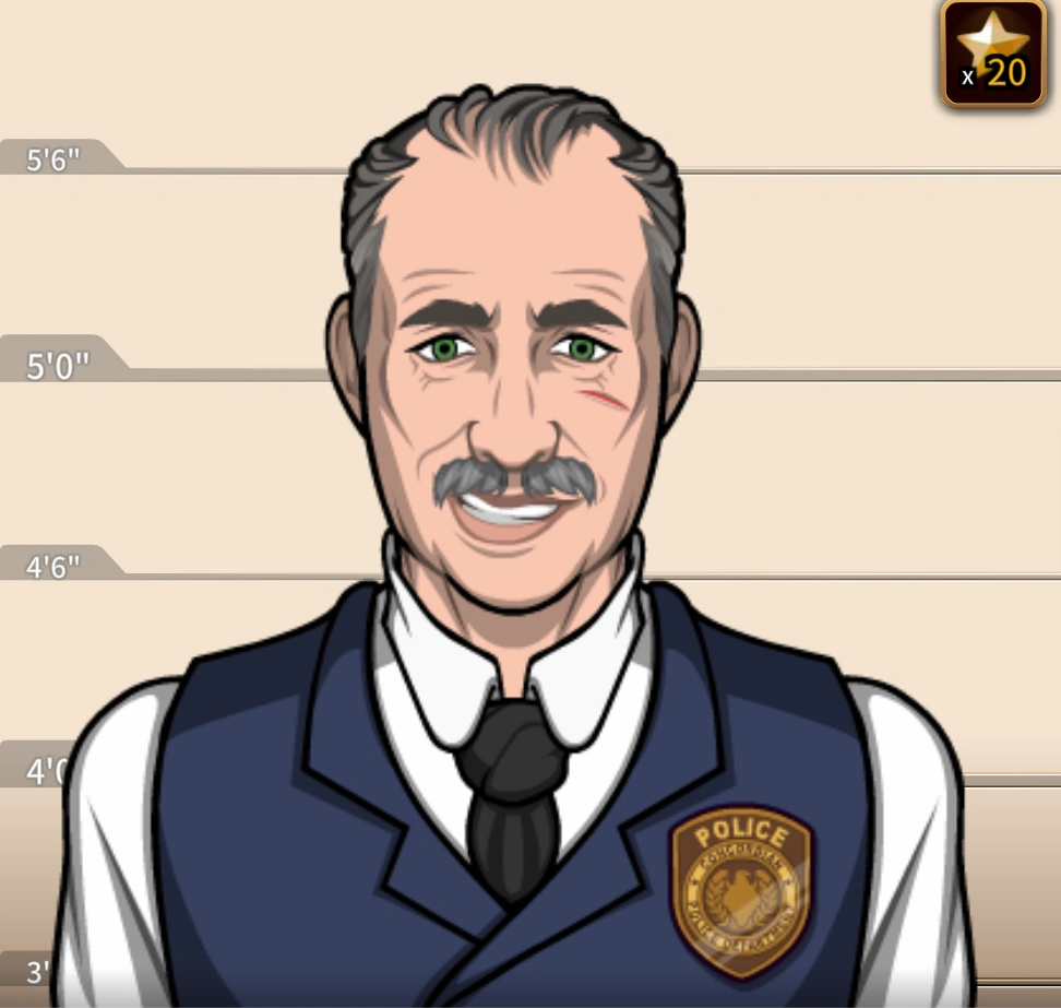 Edward is a fifty-four year-old former evidence clerk of the Concordian Police Department. He has grey hair and a mustache, with a scar on his face. He wears a blue vest with a police badge over a white shirt and a black tie.
