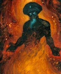 Efreeti are wicked elemental spirits who like all genie exist outside the normal cosmology of most Dungeons and Dragons, as such Efreeti are both extremely powerful entities and also empty inside, as a result Efreeti have become a proud, egotistical race obsessed with proving their superiority over others.